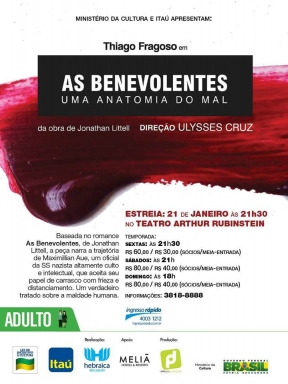 A montagem é baseada no romance de Jonathan Littell. A adaptação teatral é inédita no Brasil.