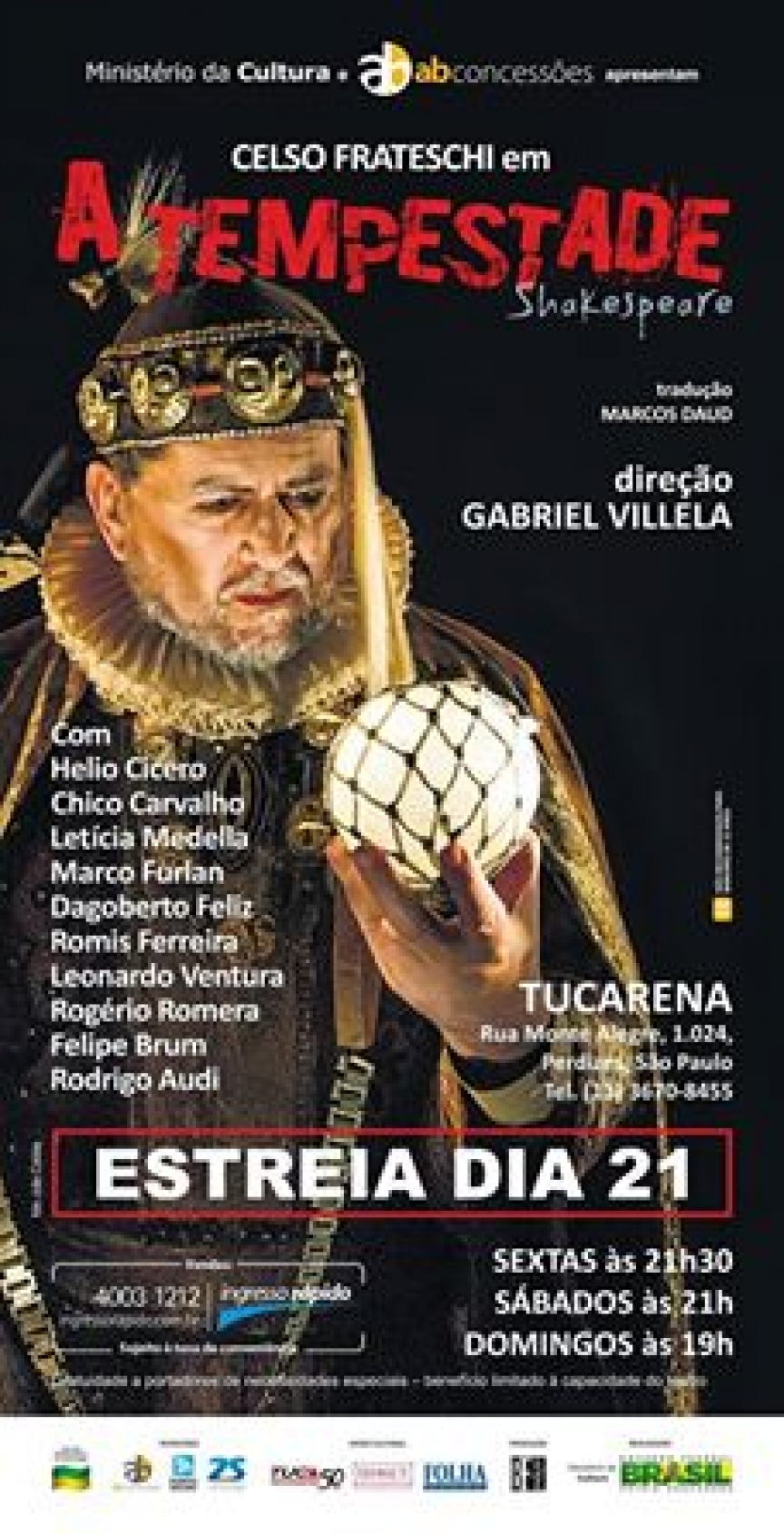 Villela coloca a história num picadeiro, cheio de poesia. A trama mistura amor, vingança, manipulação, magia, conspirações e perdão. No elenco, estão Celso Frateschi, Hélio Cicero, Chico Carvalho, Letícia Medella, Romis Ferreira, Dagoberto Feliz, Marco Furlan, Rogerio Romera, Leonardo Ventura, Felipe Brum e Rodrigo Audi. Reunião de excelentes atores, que se encaixam perfeitamente na estética de Villela.