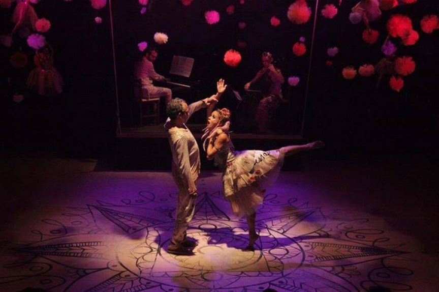 O cenário, o figurino, a trilha e o desenho de luz reforçam o clima onírico da encenação.