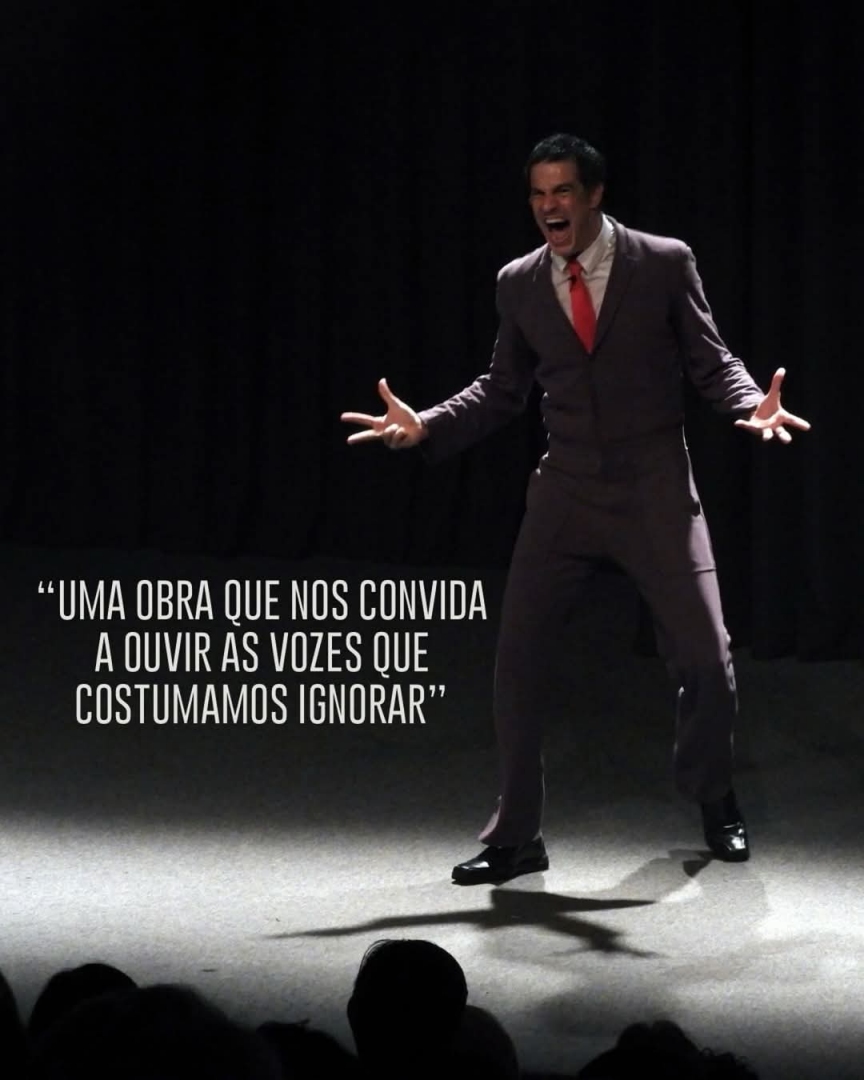 Um espetáculo que tem como foco o corpo e a palavra, integrando uma pesquisa desenvolvida pelos artistas que busca um teatro onde a voz do ator seja a protagonista da cena.