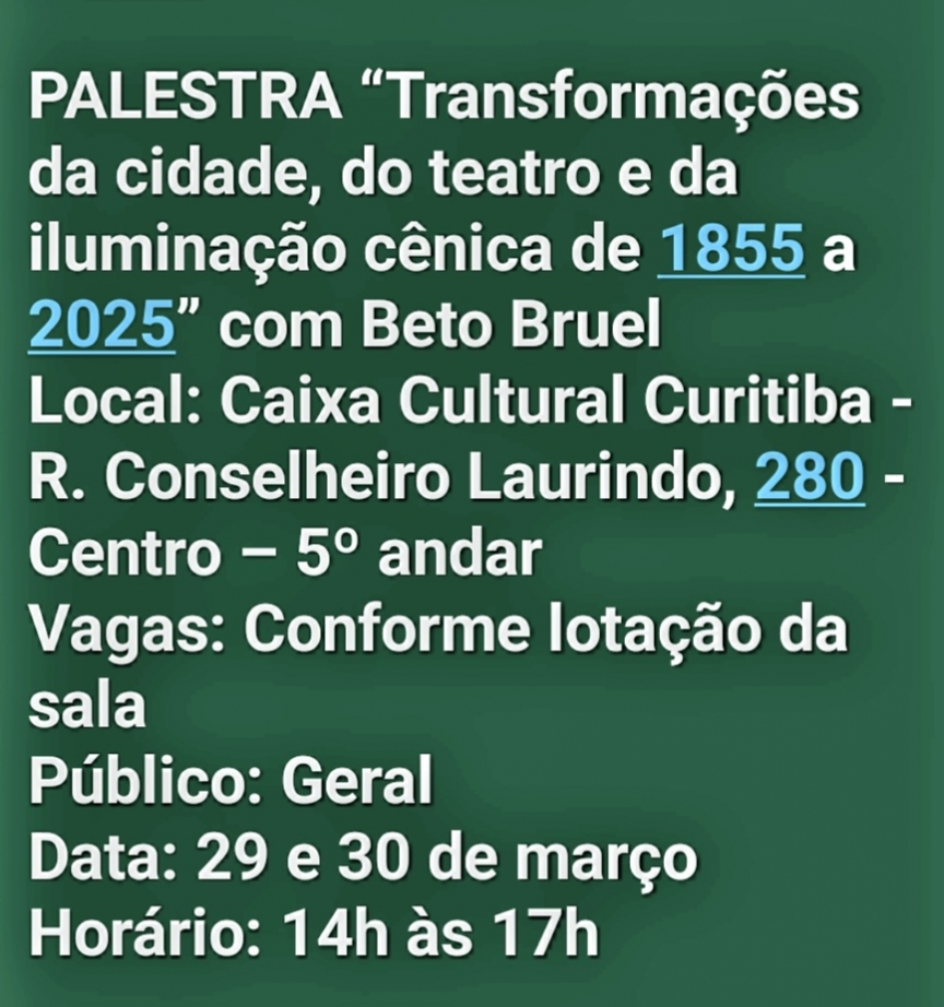PALESTRA “Transformações da cidade, do teatro e da iluminação cênica de 1855 a 2025” com Beto Bruel