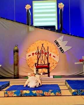 O texto de Alfred Jarry ganhou a direção de um artista criativo, que explora o teor de crítica e crueldade da peça sem deixar de lado a sua estética mágica e vibrante (brilhante).