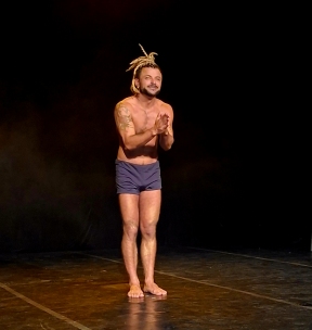 O ator, diretor e intérprete de Libras Jonatas Medeiros está em cena e a direção é da artista surda Rafaela Hoebel.