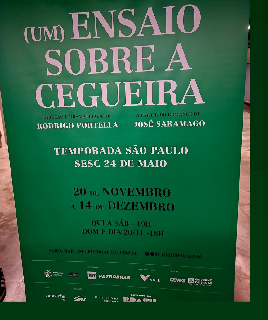 O Grupo Galpão é de 1982 e sempre encantou pelo talento dos artistas, pela vontade de sempre enfrentar desafios e pela ânsia de sempre aprimorar o trabalho de interpretação, corpo, voz, canto, instrumento. Claro que colocar no palco a adaptação de um livro de autoria do gênio Saramago não é tarefa fácil, mas o Galpão dá vida à história de uma cegueira coletiva de um modo magistral.