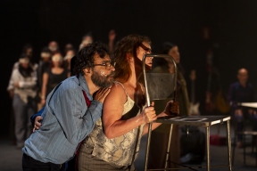 Os atores interpretam, tocam instrumentos, cantam, plenos. A essência do teatro emana. Os atores criam os ambientes, movimentando os móveis e objetos de cena, além da luz que dá o tom de um lugar que se transforma num espaço abjeto.