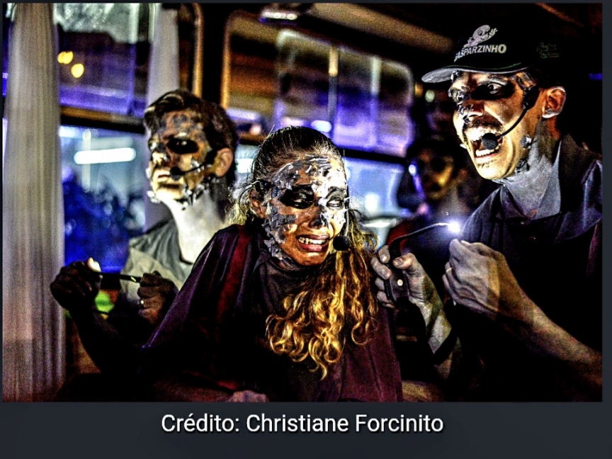 São 18 anos de uma trupe que pesquisa sobre o transporte público como agente de transformação social e tem residência no Terminal Parque Dom Pedro II desde 2007.