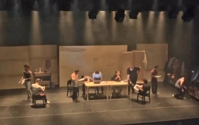 Todo o elenco permanece no palco. Os figurinos e os objetos em cena ficam expostos e os atores, além da atuação, realizam a contrarregragem. Um jogo cênico guiado com precisão e competência pelo Zé Henrique.
