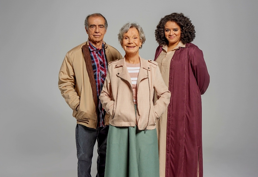 Miriam está em cena com Walter Breda, que faz o seu marido, e Rosana Maris, a neta do casal.