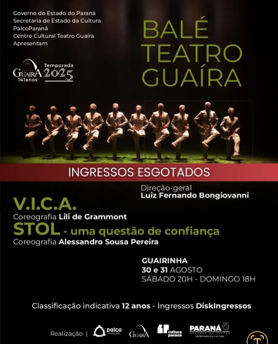 Serviço - Balé Teatro Guaíra - “V.I.C.A” + pré-estreia de “Stol: uma questão de confiança” no Brasil
