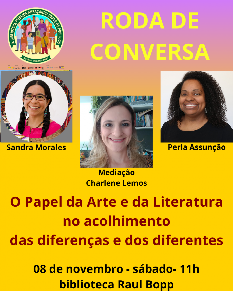 Encerrando a programação, a Roda de Conversa “O papel da arte e da literatura no acolhimento das diferenças e dos diferentes” (08/11, às 11h) reúne Sandra Morales, psicóloga e imigrante peruana com mestrado em Psicologia Social; Perla Assunção, bibliotecária da Fundação Dorina Nowill, referência em acessibilidade cultural; e Charlene Lemos, bibliotecária e coordenadora da Biblioteca Raul Bopp. O encontro propõe uma escuta sensível sobre o poder da arte e das bibliotecas públicas na construção de uma sociedade mais justa e plural.