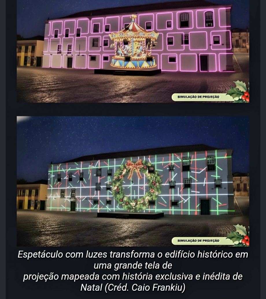 A projeção mapeada será nas paredes externas do Museu de Arqueologia e Etnologia de Paranaguá da UFPR para a encenação do espetáculo “A Lenda do Globo de Natal”. Será na Praça de Eventos do Centro Histórico e integra o projeto Natal para todos.