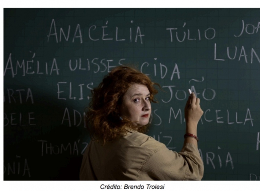 Com texto e direção de Carla Zanini, solo com interpretação de Ângela Ribeiro propõe reflexão sobre a insegurança e o medo enfrentados diariamente por uma professora sobrevivente de um atentado escolar.