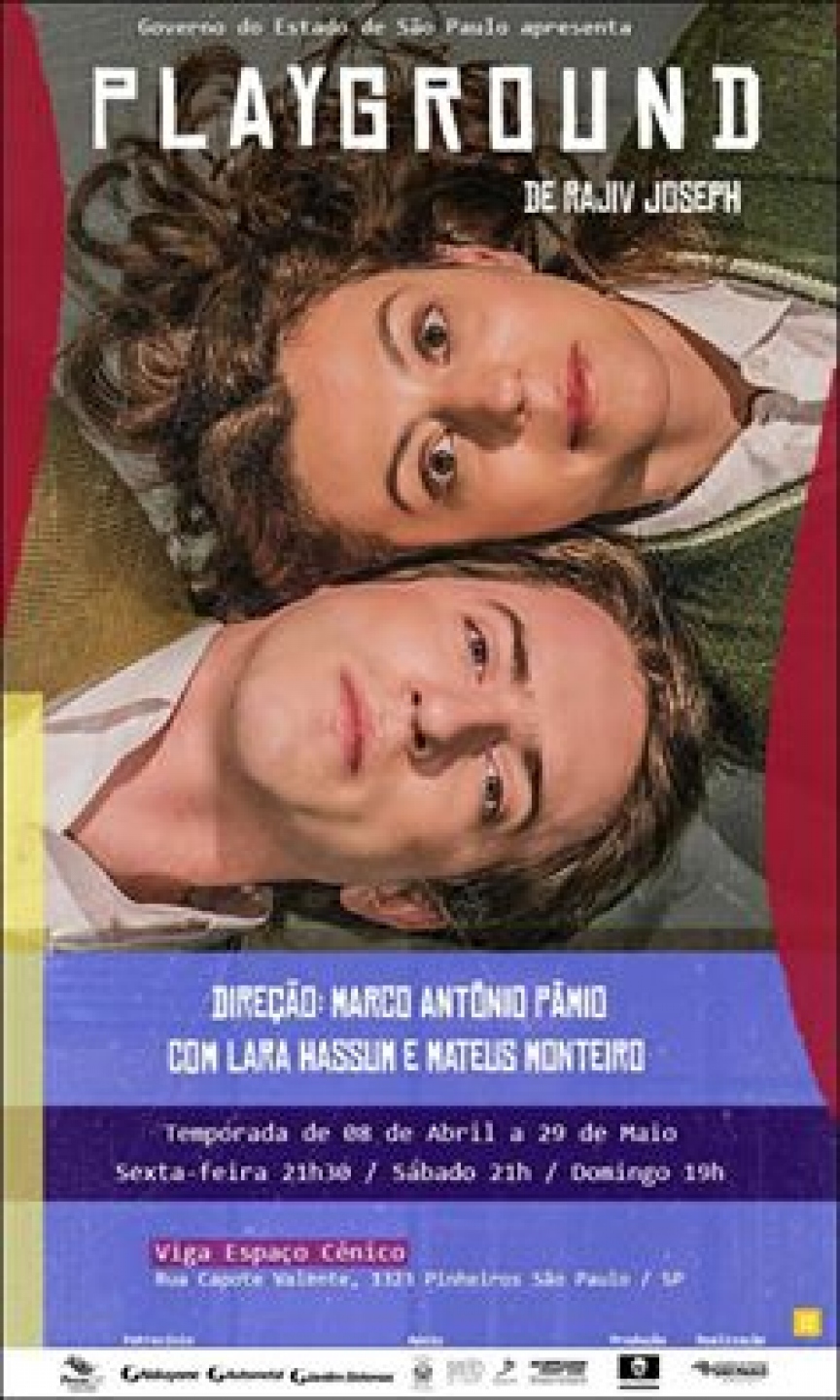 Playground, texto do norte-americano Rajiv Josef, acompanha a vida de dois jovens em vários momentos da vida, desde a infância na escola até a maturidade, no período de 30 anos.