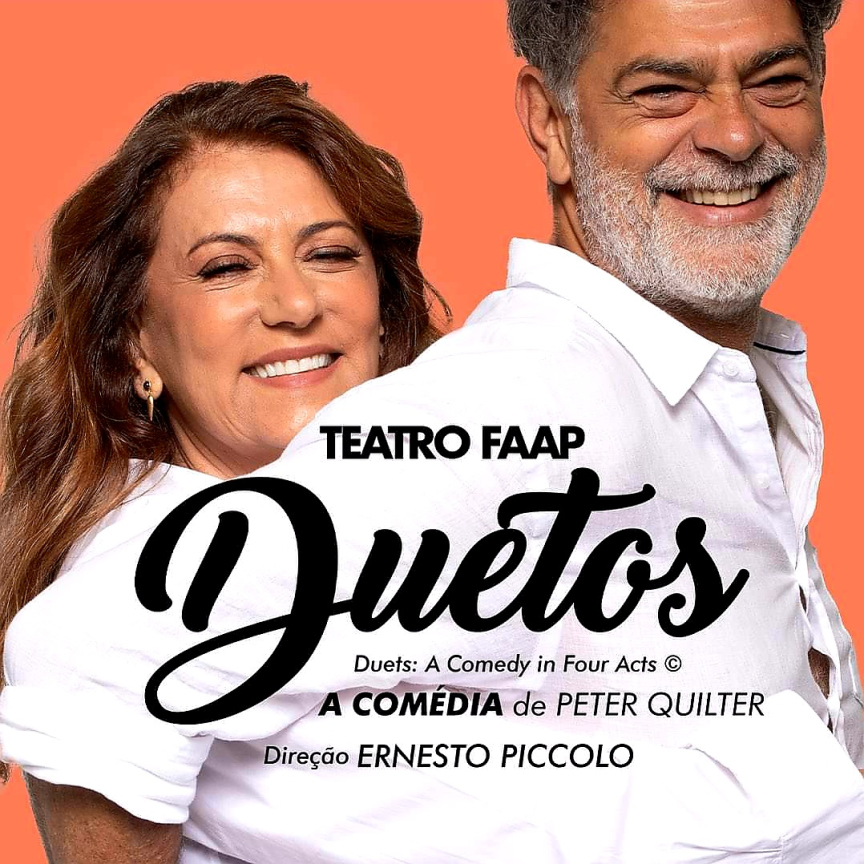 DUETOS é uma comédia romântica contemporânea do dramaturgo inglês Peter Quilter que tem como maior trunfo a presença dos atores Eduardo Moscovis e Patricya Travassos.