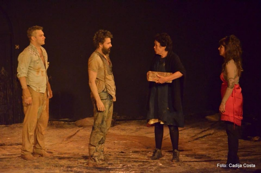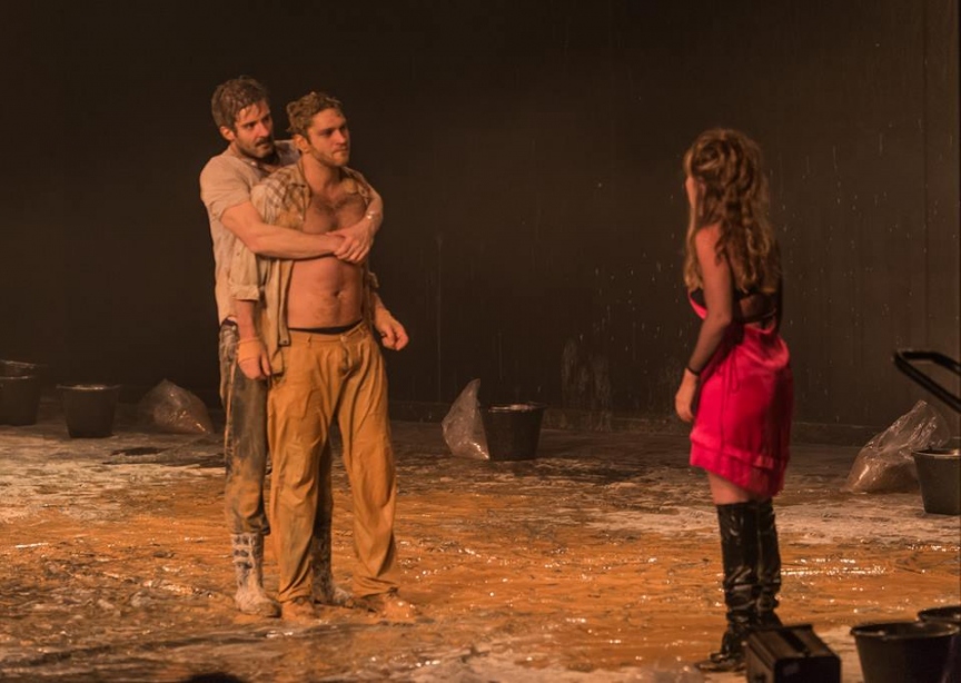 No palco vazio, ocupado pela tensão física e psicológica dos personagens, a lama de emoções e sensações emana. A lama cobre o palco e os corpos dos atores nesse ambiente opressor e primitivo .