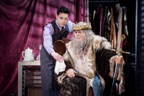 O cenário ambienta a ação nos bastidores do teatro, especialmente no camarim do ator veterano, e o figurino demonstra que o Rei Lear tem um estilo tradicional, o que chamamos de ¨teatrão¨. Tudo sem glamour porque a época é complicada, os bombardeios não param.
