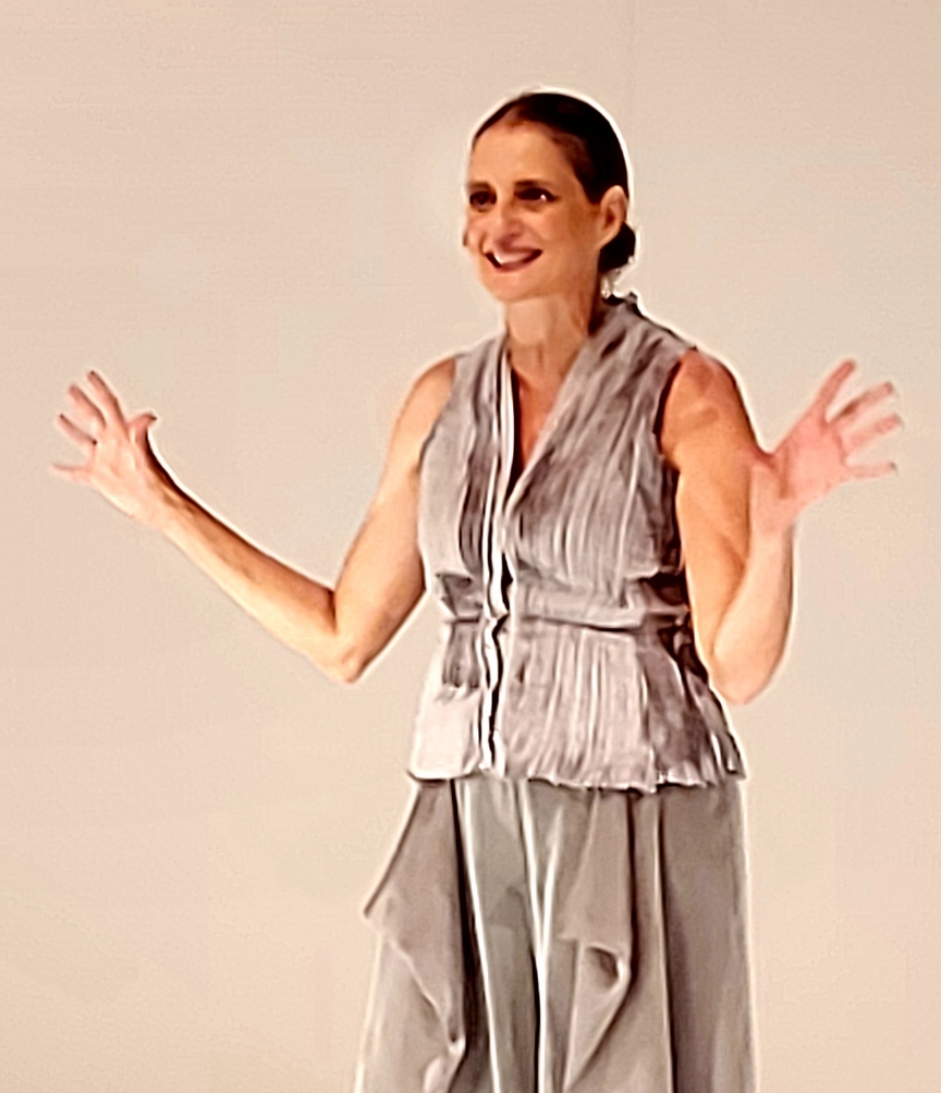 Guiada pelo seu marido e parceiro profissional Luiz Villaça , a atriz ocupa todo o tablado, com movimentações que dão vigor e sentido às histórias apresentadas. Que excelente expressão corporal!