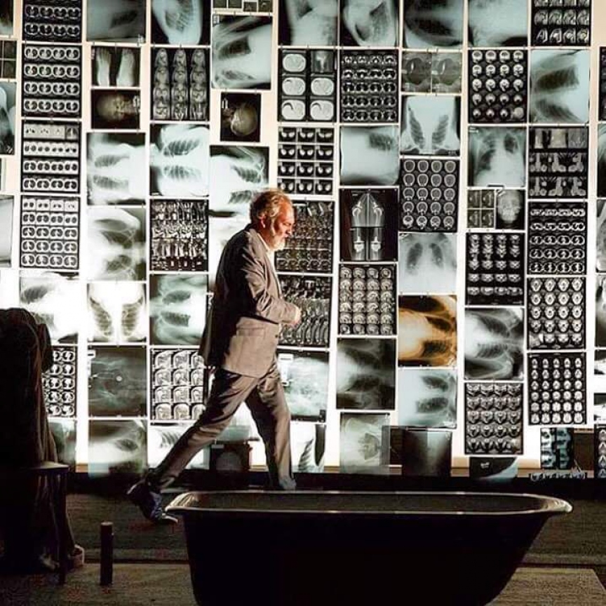 A traz um cenário repleto de raios x, que nos remetem à doença de seu personagem e à sua angústia devido ao medo da morte. Uma banheira é o objeto central do palco, que também representa o seu leito de morte e a angústia que nunca o abandonou: o desespero pela perda de seu grande amor, que morreu afogado no Rio Nilo.