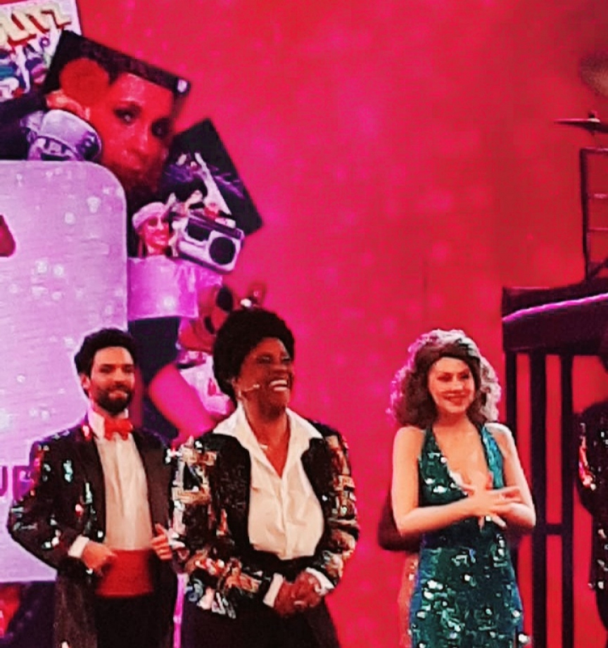 Anos 80 através de luz, cor, figurinos da época, brilho.