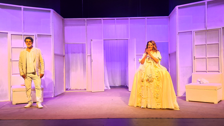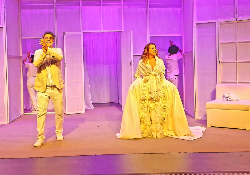 Jc Serroni assina um cenário que apresenta dois camarins onde os atores trocam os seus figurinos. O público acompanha esses momentos e visualiza o quanto Patricya e Moscovis são versáteis porque em questão de minutos conseguem mudar de personagens com muita segurança.