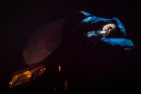 A interpretação está focada na expressão facial e na voz, já que só um foco de luz ilumina a face do ator, visto que o personagem já não sente mais o seu corpo de tanta dor e de tantos machucados.