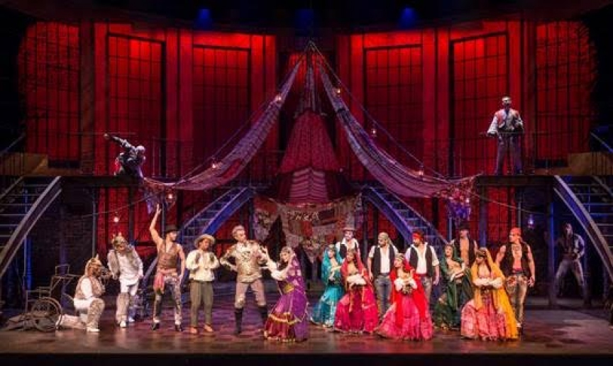 O cenário, a luz e o figurino contribuem para dar à produção um ar grandioso e de aventura.