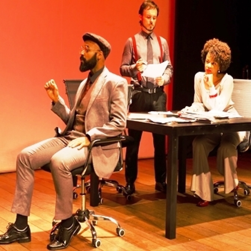 Em cena, uma equipe de advogados está frente a frente a um possível estuprador. Ele é branco e milionário. A vítima é a sua ex-amante e negra.