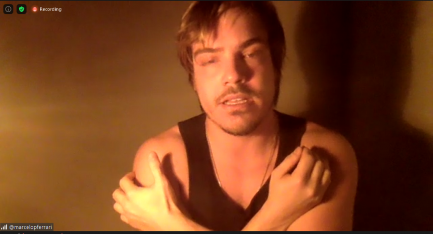O zoom é o ponto de encontro enquanto não podemos fazer com que a plenitude do teatro, encontro presencial entre ator e público, aconteça.