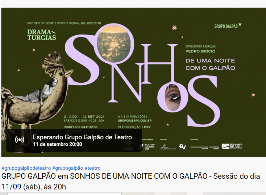 Sonhar com o Galpão. Sonhar com um mundo melhor, com o teatro respeitado por todos...será que é muito sonhar com o final da pandemia e poder abraçar, beijar e viver sem medo? O teatro está voltando, mas será que é muito sonhar com a possibilidade de ir ao teatro sem medo, sem ter que seguir protocolos? Vida, morte, solidão, arte,