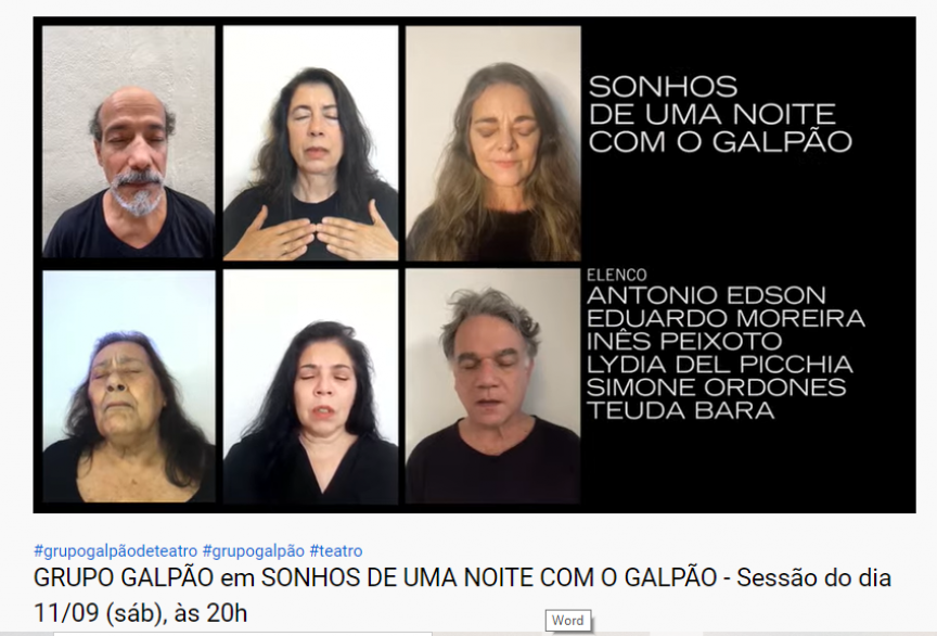 Enquanto não é possível ver um trabalho do Galpão no teatro, isto é, o teatro na sua plenitude ( encontro mágico ator e público), ver os atores na forma on-line vale muito a pena.