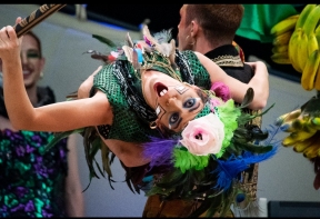 O cenário e figurino têm referências ao Brasil tropical, com detalhes que lembram um cabaré; referências do Japão, da África e do universo brega também estão presentes. Elementos artesanais, panos envelhecidos, datados, detalhes exagerados, grotescos e cortes desiguais para mostrar a decadência da sociedade, formam uma colcha de elementos preciosos.
