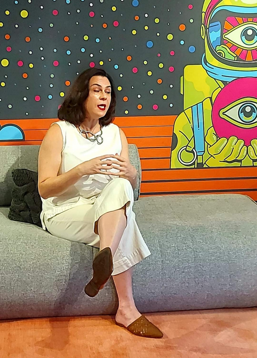 Fábia cozinha enquanto conversa com o público. Um encontro informal e necessário.