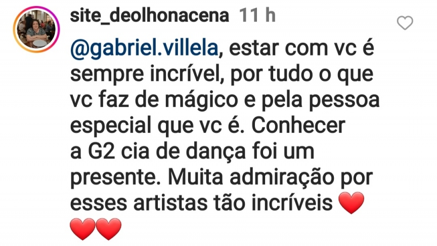 "GAG, espetáculo de dança-teatro no Guairinha, com a G2 Cia de Dança é arrebatadoramente poético e comovente graças ao elenco, mas principalmente a @gabriel.villela e @andrade1922 .