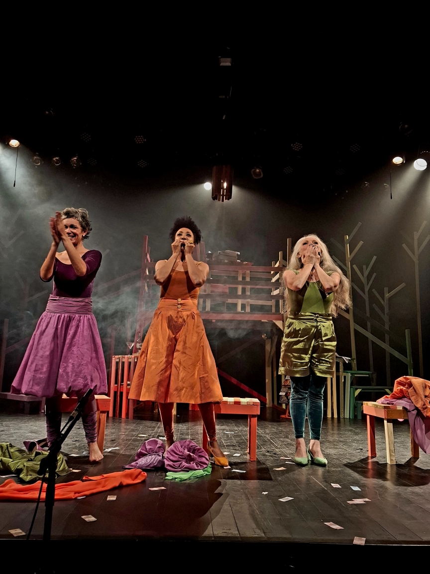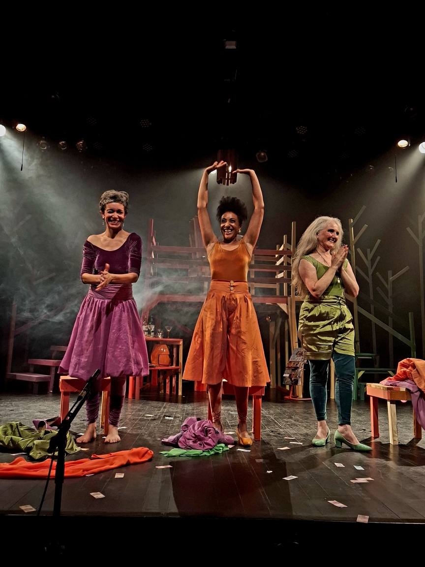 As três atrizes têm o tom exato da comédia e um tom nonsense que é reforçado pela luz, pelo figurino pop, colorido, uma trilha pulsante e um cenário que recebe essas mulheres para um jogo cênico onde ser diferente é o que torna o encontro interessante, um ambiente onde essas mulheres podem fazer o que têm vontade e exorcizar as amarras do dia a dia.