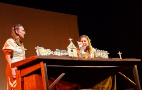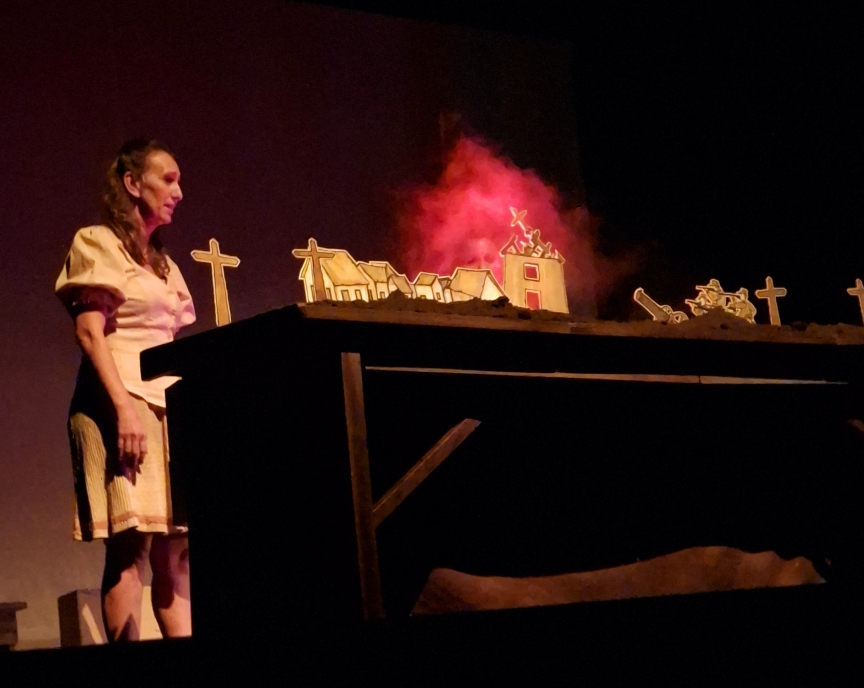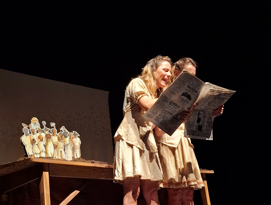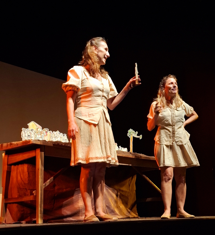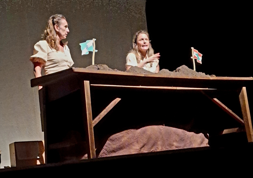 A peça fala da Guerra do Contestado que ocorreu no século XX em Santa Catarina, mas óbvio que diz muito do Brasil de hoje. Um momento histórico que contou com a força feminina e é contado por duas mulheres talentosas.