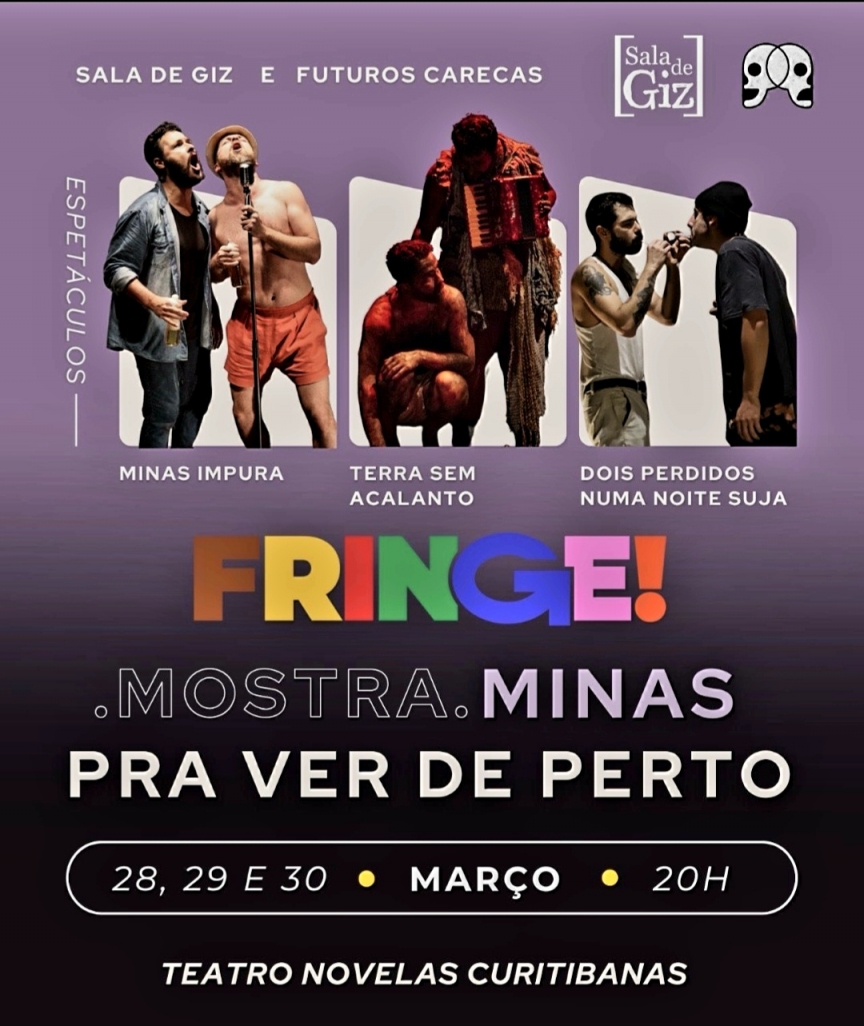 São duas cias: Sala de Giz e Futuros Carecas de Minas Gerais, três espetáculos e duas oficinas.