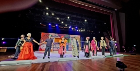 Por falar em espetáculo , Os Mambembes traz música e cor para celebrar todos que fazem o teatro acontecer.