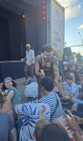 Cultura popular na veia. Humor crítico, irônico; interação com plateia, texto de Cordel e músicas, tudo com alto teor de reflexão e protesto.