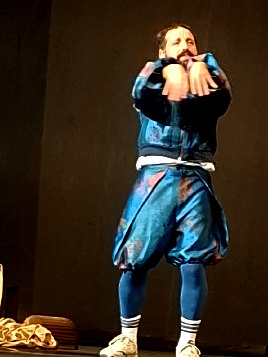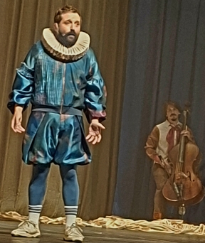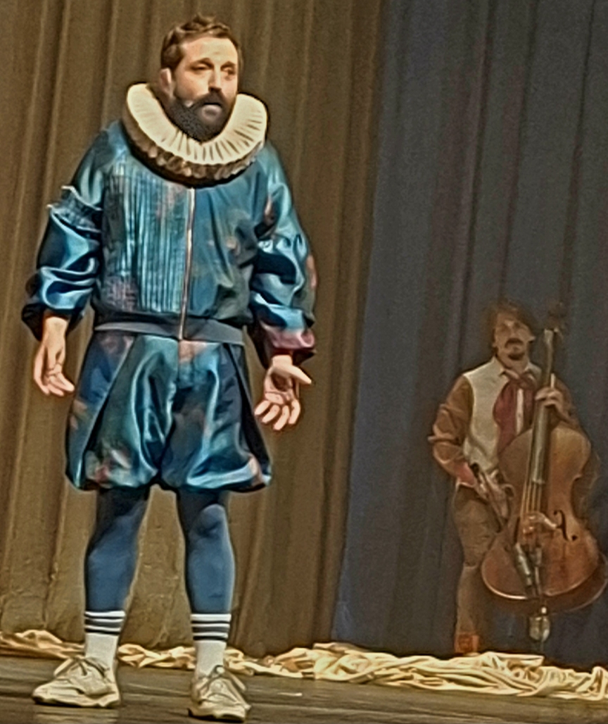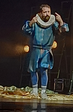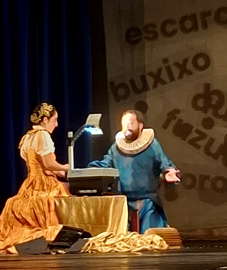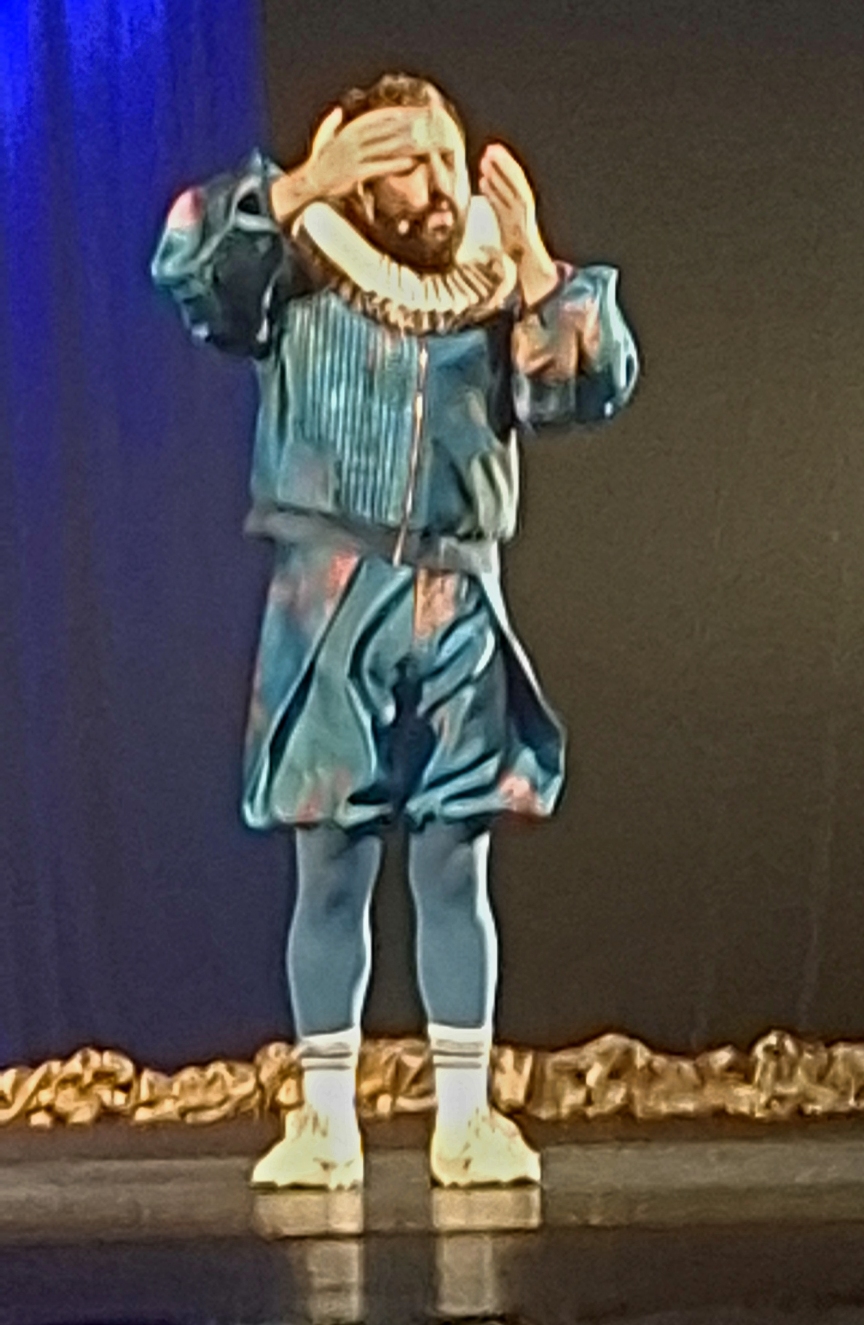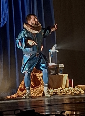 No estilo stand-up, com falas bem-humoradas, carregadas de admiração pela língua portuguesa, Duvivier domina a plateia com a sua desenvoltura e expressão corporal. É um furacão de dinamismo, vestido como um nobre elisabetano, com o colarinho usado inclusive por Camões.