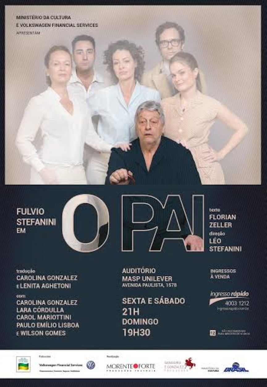 O Pai marca os 60 anos de carreira do ator Fulvio Stefanini. O premiado texto, do francês Florian Zeller, é inédito no Brasil. Completam o elenco: Carolina Gonzalez, Lara Córdulla, Carol Mariottini, Paulo Emílio Lisboa e Wilson Gomes.