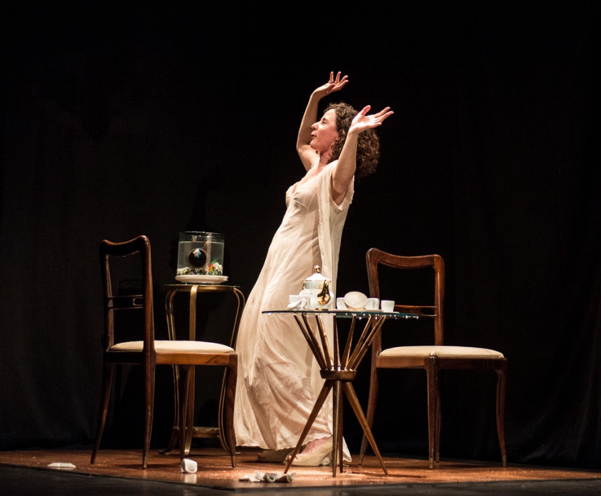 Em cena há um jogo entre o real e ficção, já que o espetáculo começa com uma carta, escrita pela personagem, endereçada à atriz, e lida para a plateia.