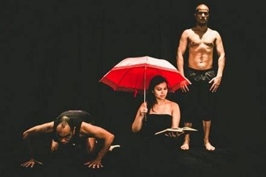 Em cena, os intérpretes-criadores Dani Corrêa, José Alessandre e Roberto Santos.