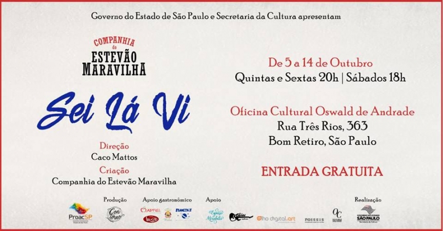 SEI LÁ VI – Estreia dia 5 de outubro na Oficina Cultural Oswald de Andrade.