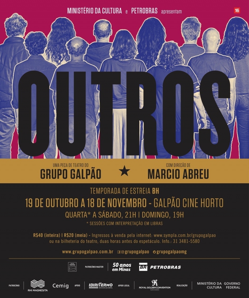 O grupo galpão apresenta o seu novo espetáculo Outros em Belo Horizonte, Minas Gerais, na sua sede Galpão Cine Horto. As estreias são sempre muito esperadas pela qualidade das produções que realizam.