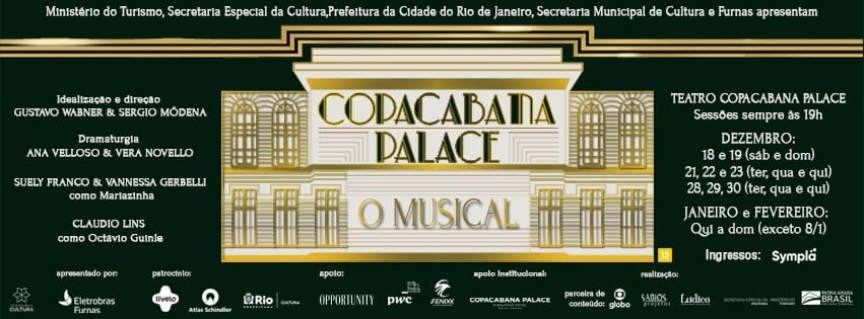 “Copacabana Palace - o musical”, que foi idealizado por Gustavo Wabner e Sergio Módena, reinaugura o Teatro Copacabana Palace, fechado desde 1994. Wabner carrega o desejo de encenar esse musical desde 1997 e a reinauguração do teatro foi uma bela coincidência.
