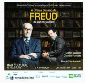 Felizmente, no dia 3 de março, quinta-feira, acontecerá a estreia presencial de A Última Sessão de Freud, com Odilon Wagner como Freud; Claudio Fontana como o escritor e crítico literário C.S.Lewis, e Elias Andreato assinando a direção.