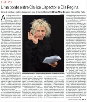 O espetáculo apresenta os textos da renomada escritora Clarice Lispector, com a dramaturgia de Welington Andrade e canções interpretadas por Elis Regina.