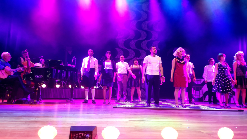 As cenas acontecem num cabaré com bar, mesinhas, a cortina para abrir e fechar os eventos, luz, alegria e deboche. Os figurinos do final dos anos 50, início dos anos 60 reforçam o clima de cabaret.