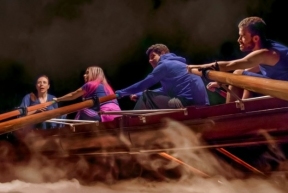cria uma realidade pictórica em cena, com imagens que mais parecem pinturas em movimento. Um barco real de madeira, de quase 10 metros, marca a abertura do espetáculo.