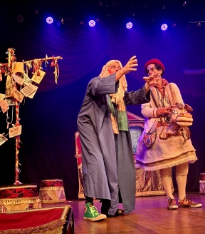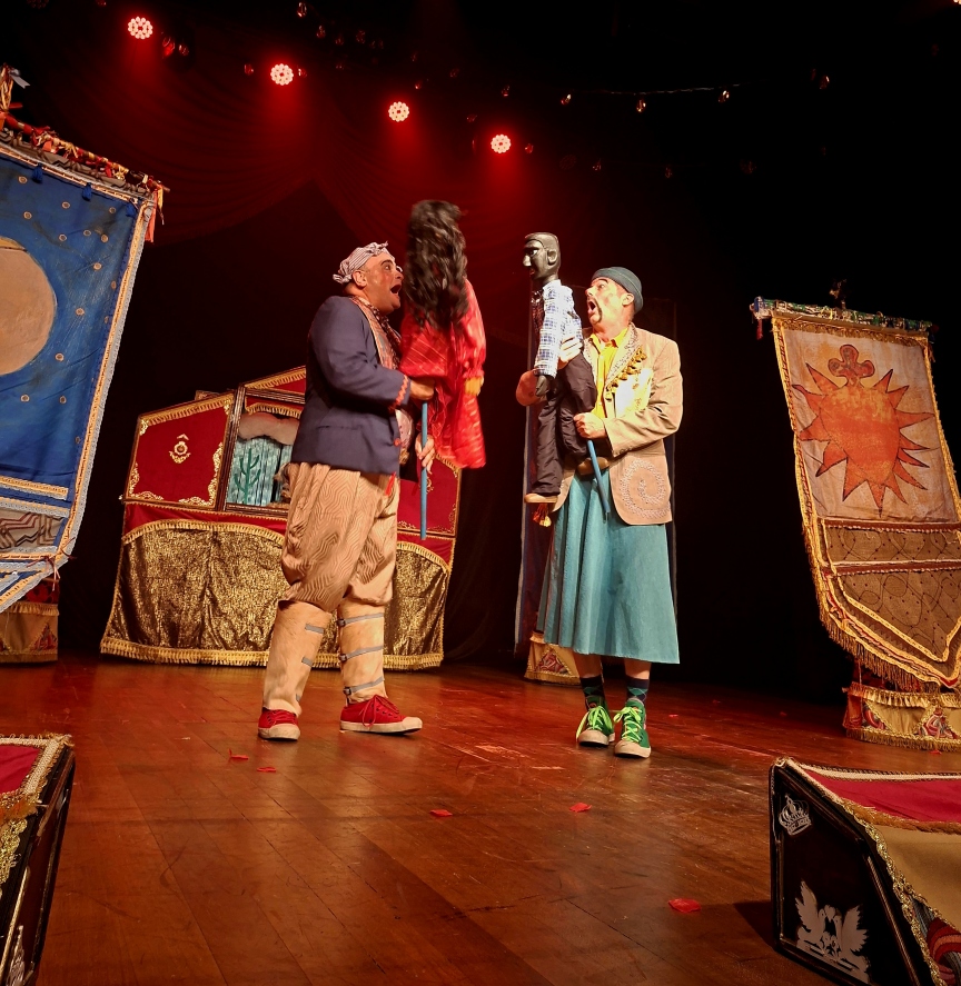 Direção e dramaturgia: Marcelo Romagnoli | Elenco: Fabio Espósito, Gúryva e Henrique Stroeter. Manuel Dantas Suassuna, filho do mestre, assina as pinturas dos tecidos.